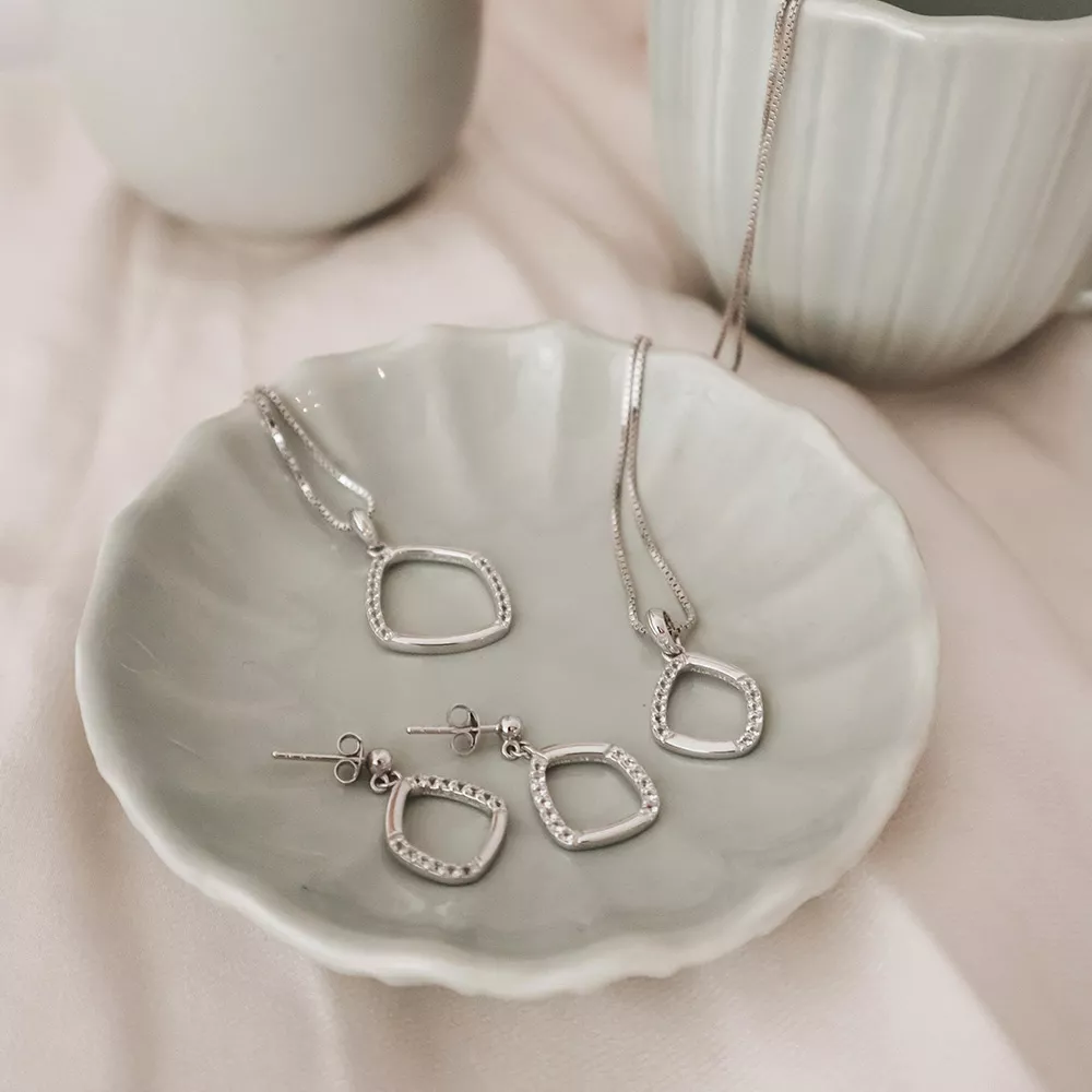 Náhrdelníkje vyroben z rhodiovaného stříbra nejvyšší kvality a je dodáván v originální krabičce značky Hot Diamonds.Rhodiová úprava zajišťuje stříbru stejné vlastnosti jako u bílého zlata – odolává oxidaci a nečerná.Diamanty mají briliantový brus a jsou z nekonfliktních zdrojů, tzn. podle mezinárodních dohod nejsou spojeny s financováním nelegálních aktivit.Ke šperkům dodáváme certifikát od výrobce Hot Diamonds z Velké Británie potvrzující, že jsou kameny přírodní diamanty.