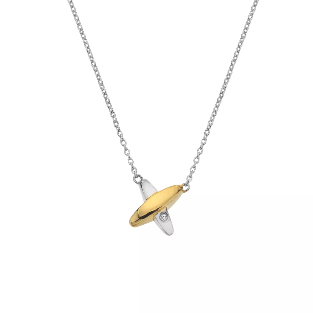Stříbrný náhrdelník Coupled Two Tone s diamantemNáhrdelníkje nadčasovým kouskem díky jemnému dvoubarevnému překříženému designu, který působí elegantně a sofistikovaně.Přívěsek je vyroben z rhodiovaného stříbra a ručně osazen pravým diamantem o velikosti 0,01 ct (I3/H). Jeho rozměr je 9 x 11 mm a je zavěšen na řetízku o délce 40–45 cm, který pohodlně padne kolem krku.Šperk je dodáván v originální krabičce Hot Diamonds.