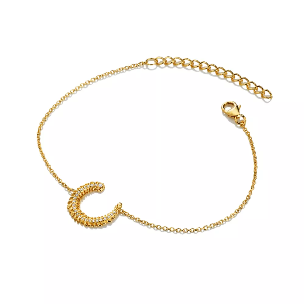 Náramek z kolekce Selene, inspirované bohyní Měsíce, kombinuje jemné řecké listy s řadou drobných bílých topazů.Šperk je vyroben z rhodiovaného stříbra a ručně osazen pravým diamantem. Náramek je nastavitelný v rozmezí 17–21 cm pro pohodlné nošení.Dodává se v originální krabičce Hot Diamonds spolu s dokladem o pravosti diamantu.