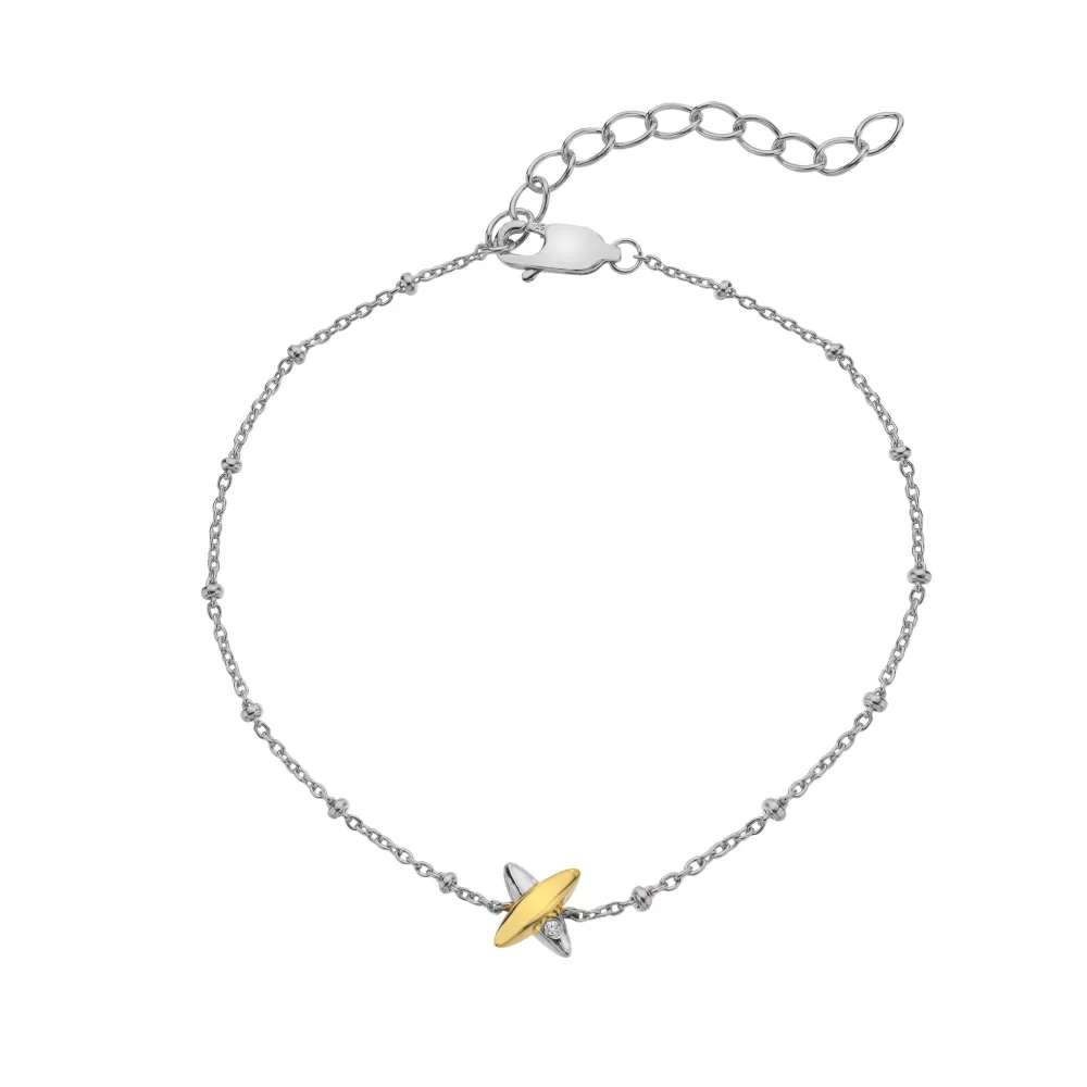 Stříbrný náramek Coupled Two Tone s diamantemObjevte nadčasový kousek s tímto jemným dvoubarevným náramkem, jehož překřížený design je doplněn kuličkovým detailem.Náramek je ideální pro každodenní nošení, ale zároveň působí sofistikovaně i při slavnostních příležitostech.Vyroben je z rhodiovaného stříbra a ručně osazen pravým diamantem o velikosti 0,01 ct (I3/H). Díky nastavitelnému zapínání má délku 17–21 cm, takže se pohodlně přizpůsobí zápěstí.Šperk je dodáván v originální krabičce Hot Diamonds.