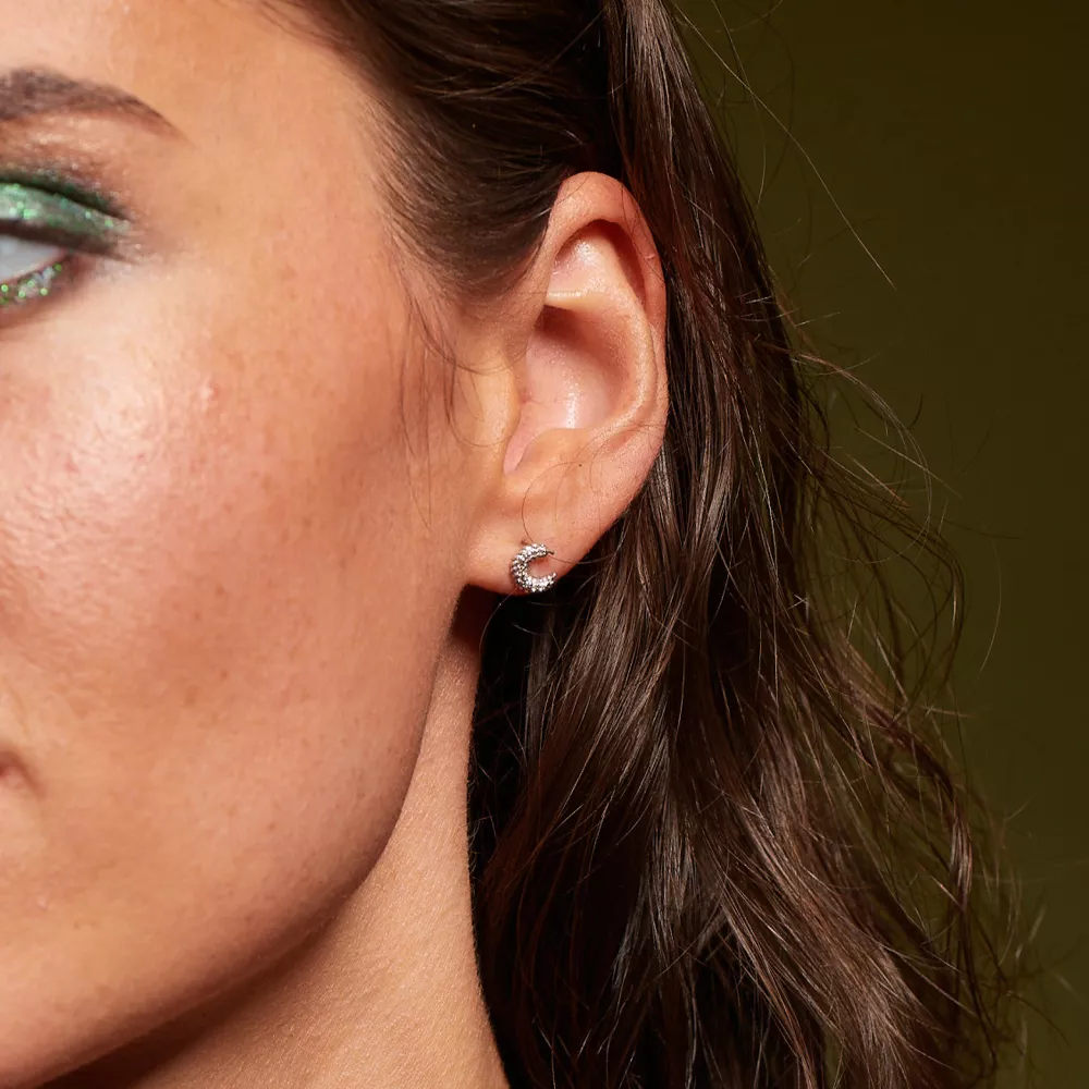 Stříbrné náušnice Selene s diamantem a topazyJedná se o jemný šperk inspirovaný bohyní Měsíce, kterév sobě nesou kouzlodecentních řeckých lístků. Tento elegantní design doplňuje řada drobných bílých topazů spolu s diamantem.Náušnice jsou vyrobeny z rhodiovaného stříbra a ručně osazeny dvěma pravými diamanty (2× 0,005 ct, I3/H) a bílými topazy. Jejich rozměr je 7 × 7 mm, což z nich činí decentní, a přitom sofistikovaný doplněk.Šperk je dodáván v originální krabičce Hot Diamonds.