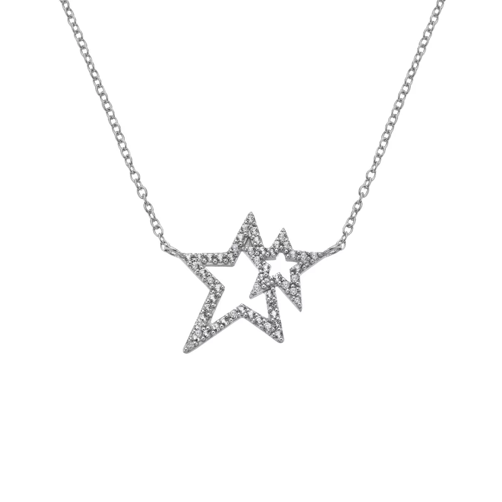 Náhrdelník Shimmer StarPřívěsek v podobě třpytivé hvězdy osazené bílým topazem je vyrobený z rhdiovaného stříbra a ručně osazený pravým diamantem. Přívěsek měří 16 × 16 mm a je zavěšen na nastavitelném řetízku o délce 40–45 cm.Dodáván v originální dárkové krabičce Hot Diamonds.