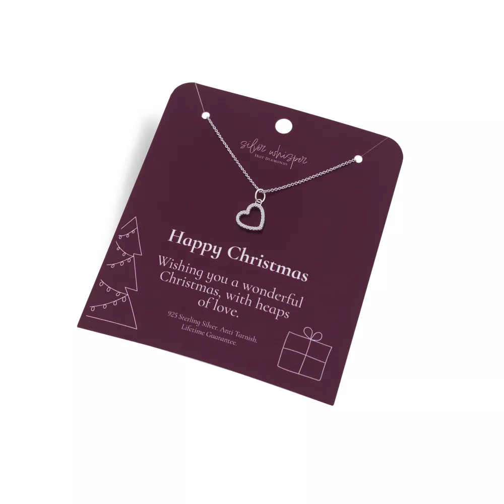 Náhrdelník Happy Christmas s jemným stříbrným srdíčkem je krásným a symbolickým vánočním dárkem, kterým snadno vyjádříte lásku, přání a blízkost. Jeho minimalistický a něžný design působí elegantně a krásně doplní sváteční atmosféru i zimní outfity. Šperk je vyroben z pravého stříbra 925/1000 a díky rhodiové úpravě si udržuje dlouhotrvající lesk a odolnost proti zčernání. Dodává se na krásné vánoční kartičce s luxusním dárkovým sáčkem – připraveno rovnou jako dárek pod stromeček.Překlad na kartičce:„Přejeme ti nádherné Vánoce plné lásky.“