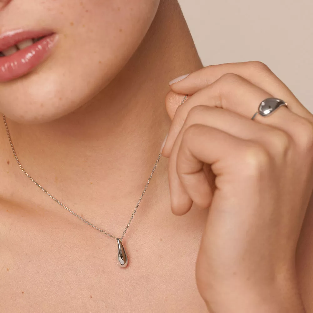 Rhodiová úprava zajišťuje stříbru stejné vlastnosti jako u bílého zlata – odolává oxidaci a nečerná.