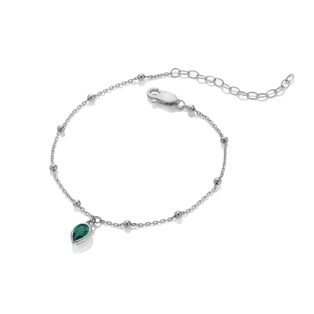 Náramek „May“ s přívěskem osazeným kubickou zirkonií smaragdové barvy, inspirovaným měsícem květen a symbolizujícím lásku, vitalitu a růst.Podporuje prosperitu a vnitřní vyrovnanost.Vyroben z 925 rhodiovaného stříbra, odolného proti zčernání.Dodáván na barevné kartičce s luxusním dárkovým sáčkem – ideální narozeninový dárek pro někoho narozeného v květnu.