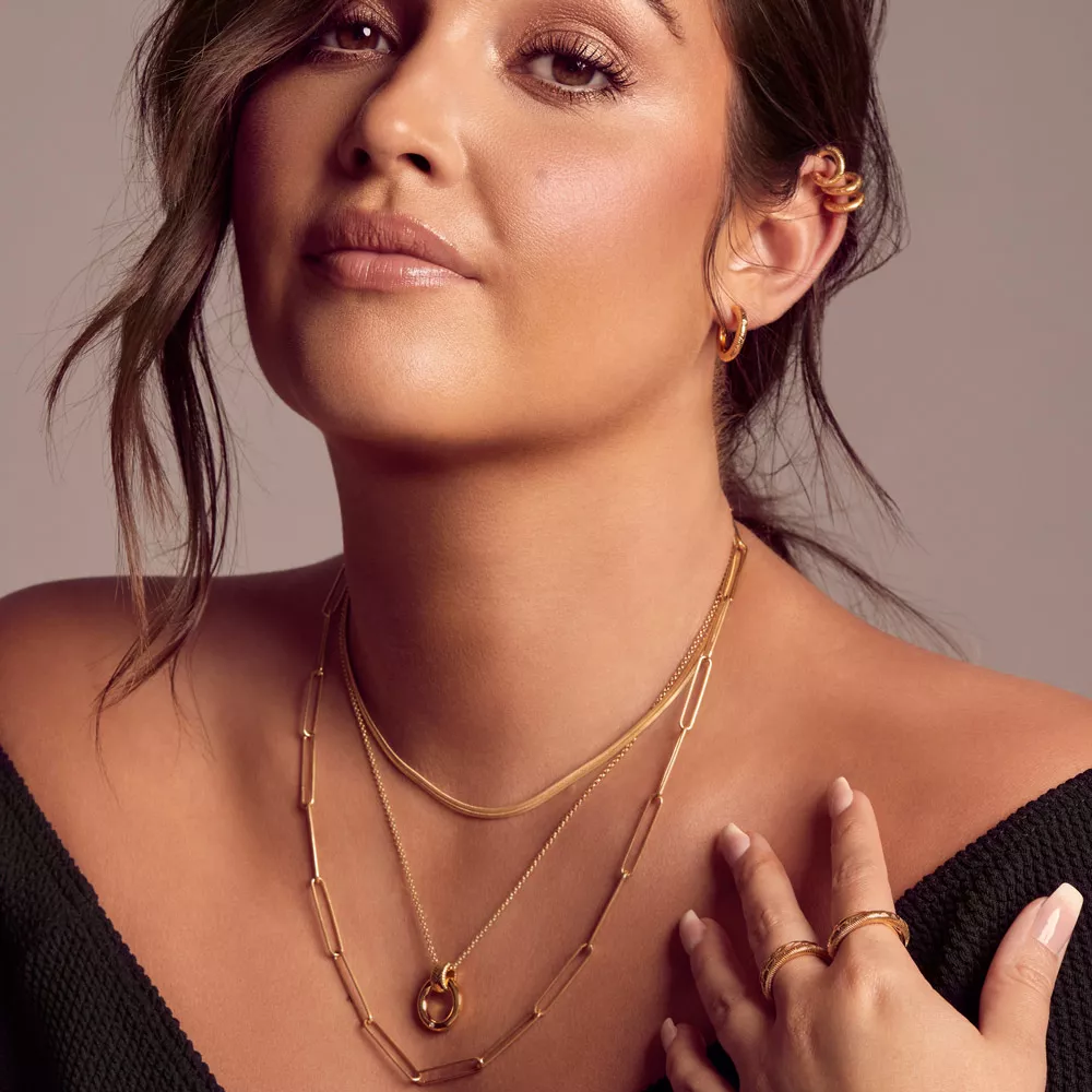 “Od osobitých přívěsků, až po jemné řetízky a výrazné tvary, to vše a ještě více. Ano, každý styl nošení náhrdelníku je unikátní, ať už jednotlivě, nebo při kombinaci délek, tvarů a velikostí. Nebojte se experimentovat!”