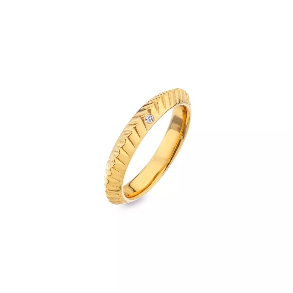 Prsteny jsou vyrobeny z pečlivě zpracovaného stříbra 925/1000 a pozlaceny 18-ti karátovým zlatem s manuálně osazeným diamantem.