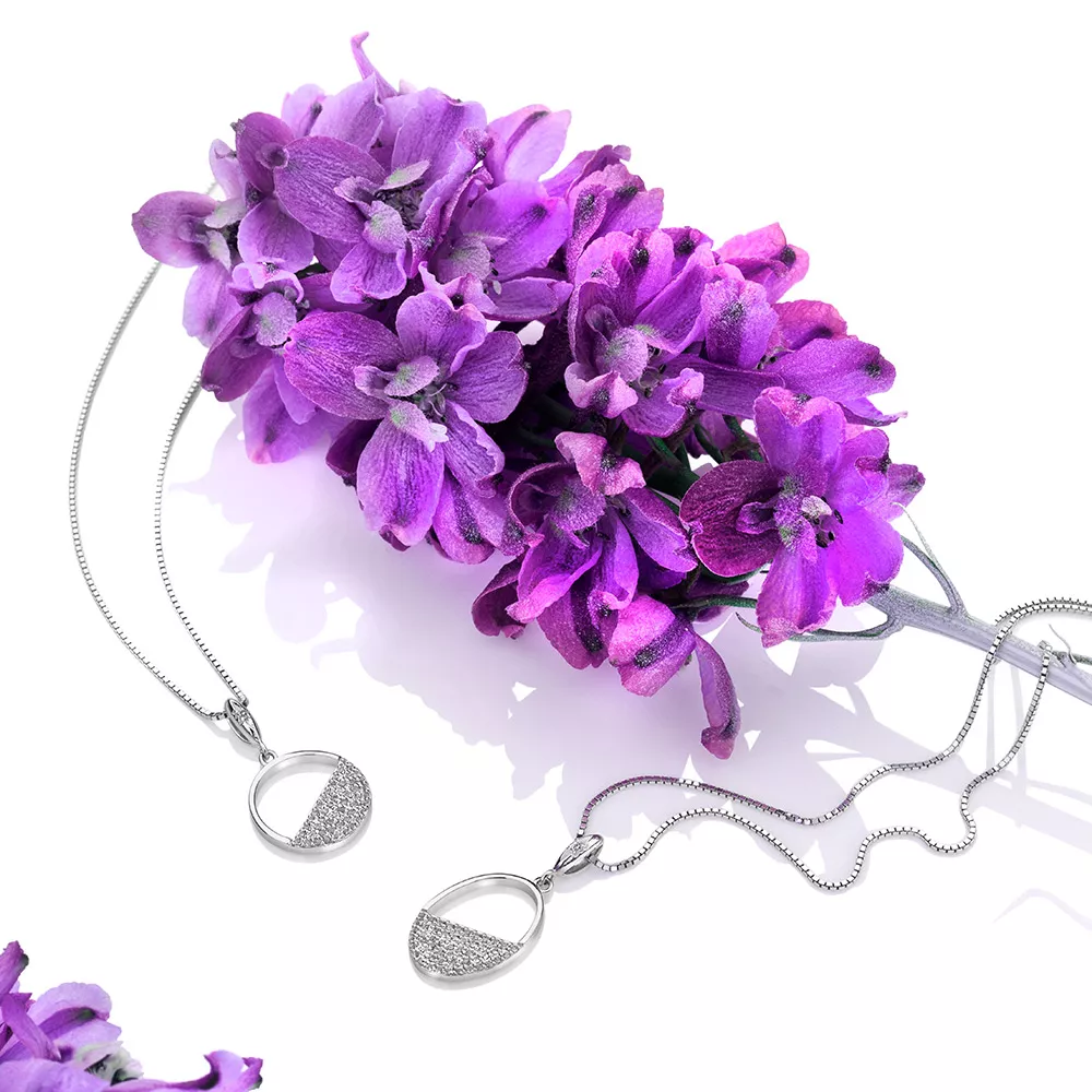 Rhodiová úprava zajišťuje stříbru stejné vlastnosti jako u bílého zlata – odolává oxidaci a nečerná.
